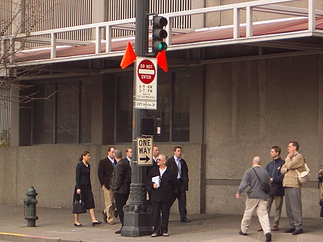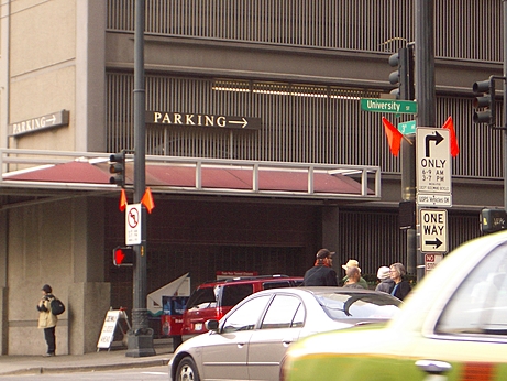 I was stopped for failing to obey a traffic control device. This occurred at the intersection of University and 3rd Avenue in downtown Seattle at 510pm on October 26, 2005.
